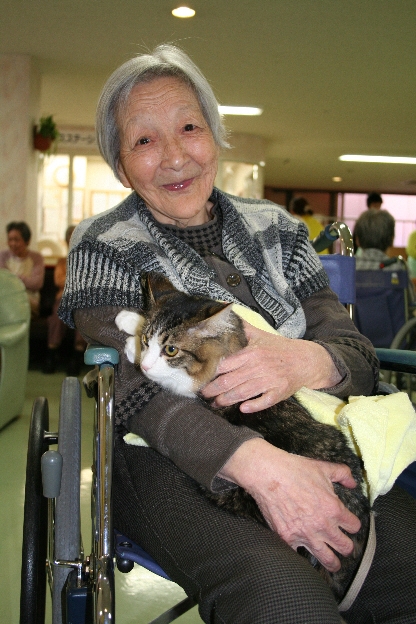猫ちゃんを抱いてご満悦です。パンニャちゃんありがとう!