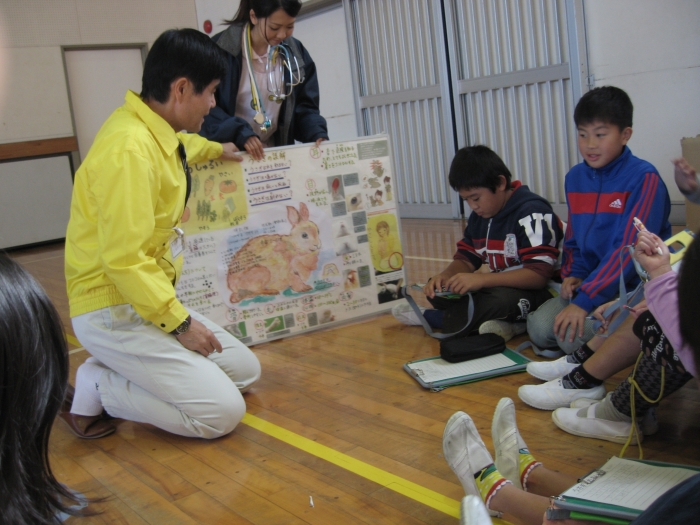 11月10日静岡市立駒形小学校にて3年生42名、4年生46名を対象に「ウサギふれあい教室」が行われました。 ウサギの生態をビデオで研修し、実際にウサギに接しウサギの心音を聞き、最後に学校で飼育されているウサギの紙芝居を見ました。