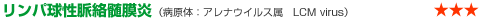 野生ハツカネズミを自然宿主とし、世界中に分布している。ウイルスは一生持続感染し、人へは持続感染動物の尿や唾液などに含まれたウイルスが直接感染する。 |